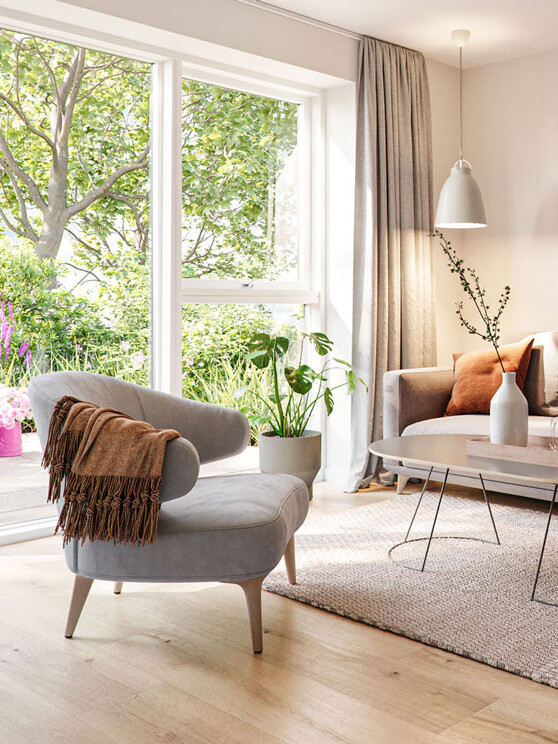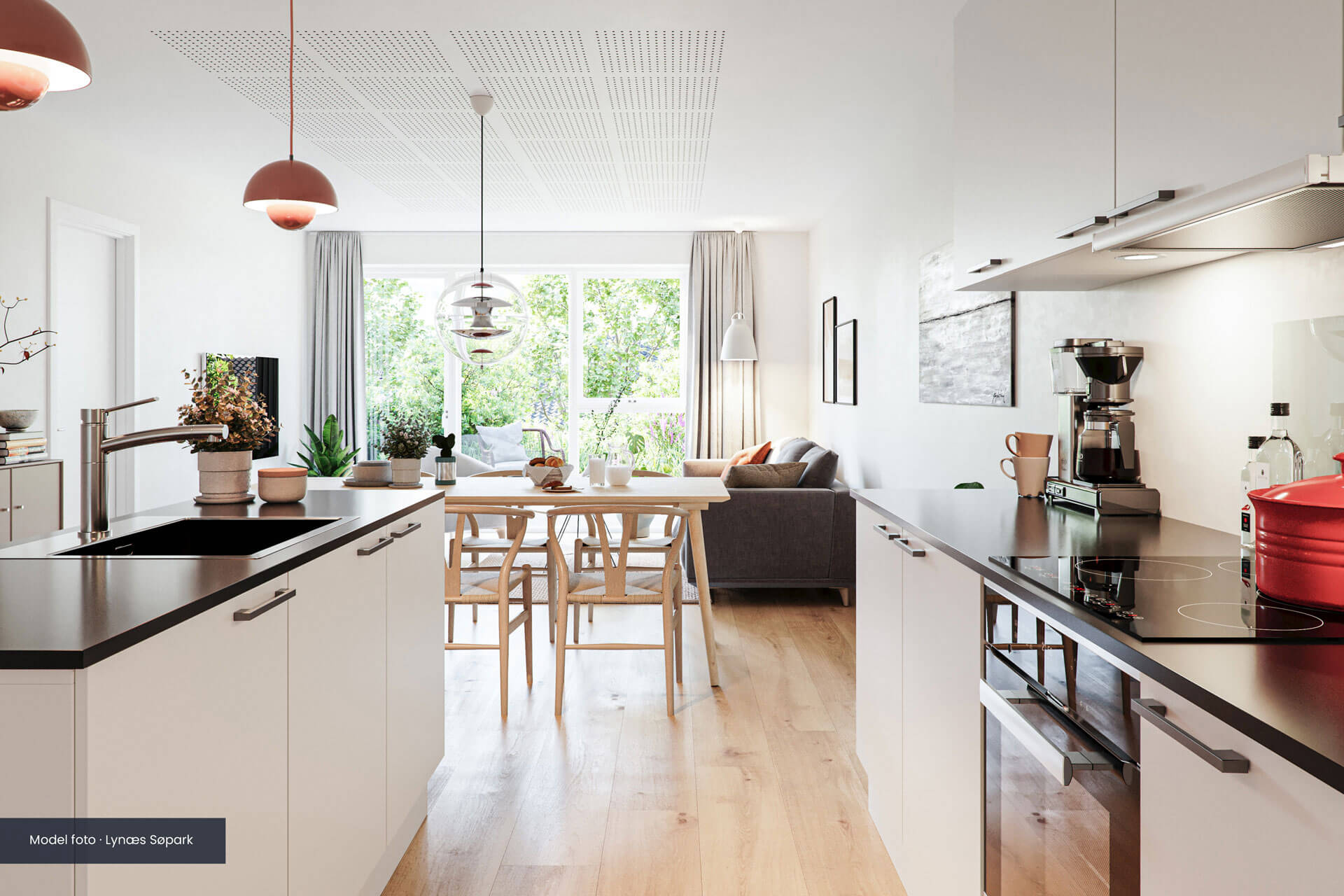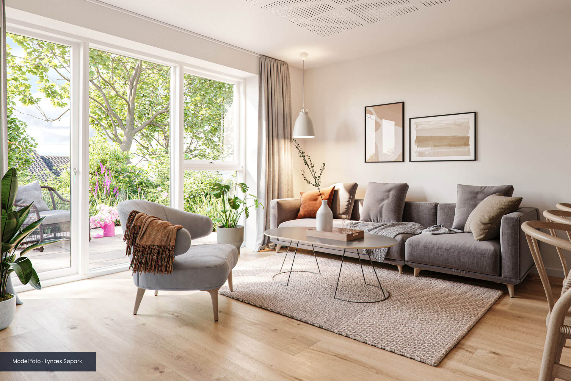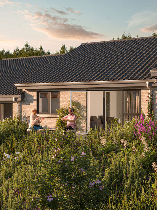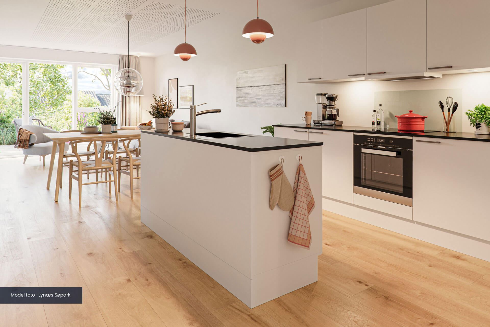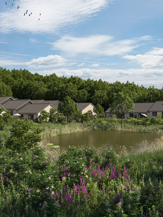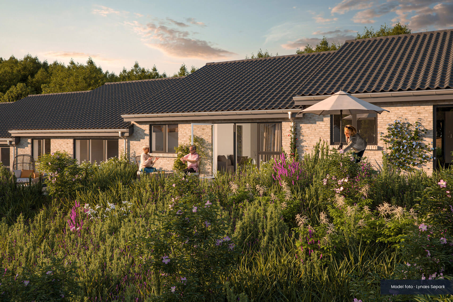 Natur · Nærvær · Fællesskab er rammen for de 51 nybyggede 1-plans rækkehuse smukt placeret ved sø omgivet af natur og skov. Kort afstand til strand, Lynæs Havn og indkøbsmuligheder. Rækkehusene er lejeboliger i tre størrelser: 85 kvm, 95 kvm og 105 kvm alle med egen lille terrasse.